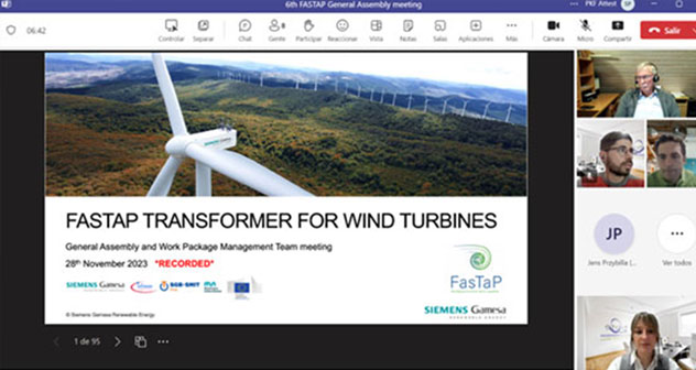 El mismo día, 28 de noviembre, se celebró en modalidad online la 6ª asamblea general FasTaP. Este proyecto H2020 trata de contribuir al sector de la energía eólica a través de un innovador transformador electrónico rápido para turbinas.